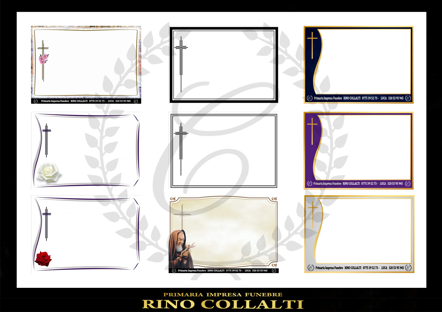 La Primaria Impresa Funebre Rino Collalti è un punto di riferimento nel settore delle onoranze funebri per la progettazione e la realizzazione di manifesti funebri sobri, raffinati e personalizzati. Siamo consapevoli che ogni funerale è un momento delicato e di profonda riflessione, e comprendiamo l'importanza di creare un omaggio visuale che rispecchi l'unicità e la memoria del defunto.